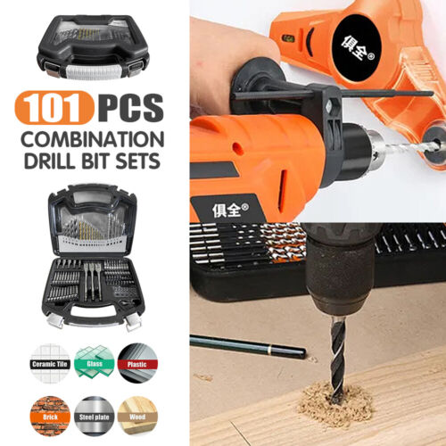 101Pc Combination Drill Bits Set Wood Hole Saw Metal Cement Screwdriver Drilling
