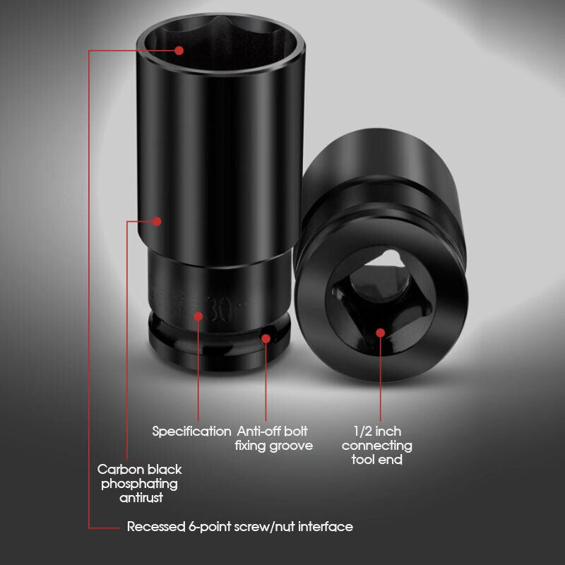 10Pcs 3/4'' Drive Deep Impact Socket Tool Set 80mm Length tool set 22-41mm