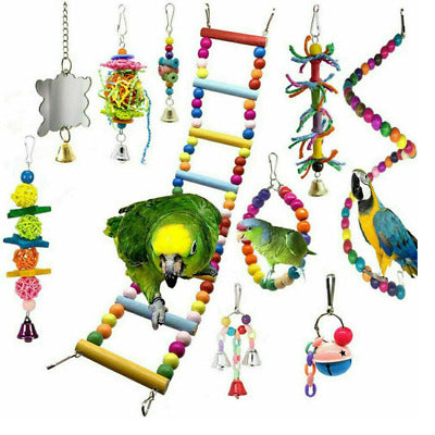 Parrot Birds Toys 10pcs Swing Chewing Toys Bell Hammock Cage Budgie Cockatiel