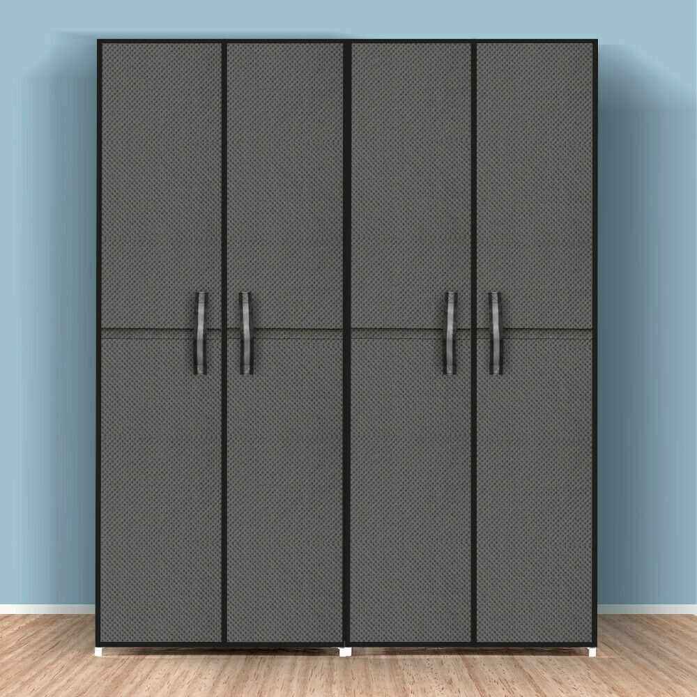 The magnetic doors make it much easier to open or close than zipper door. You can either put clothes or shoes in the wardrobe.