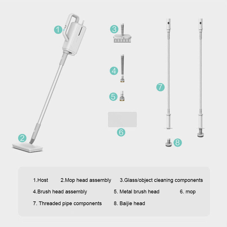 Introducing our powerful Steam Mop, a versatile steam cleaning and sterilization device designed to make your cleaning tasks a breeze. With five brush attachments and a cloth mop head included, you'll have ultimate flexibility in keeping your space spotless.