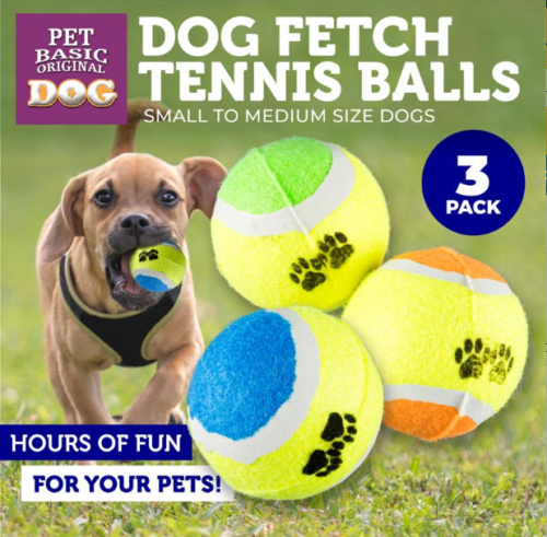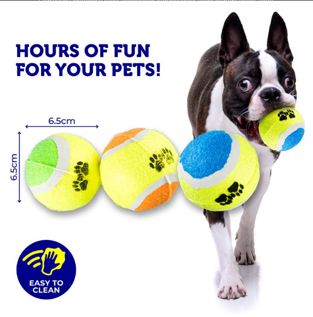 Pet Tennis Balls 3 Pcs Tooth Chew Interactive Play Fetch Game Fun & Exercise