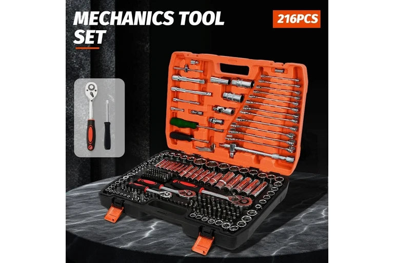 Equip your workshop with this 216-piece Mechanics Tool Set made from durable chrome vanadium steel. Ideal for home repairs, automotive work, and professional use, this comprehensive set includes sockets, wrenches, pliers, screwdrivers, and more.