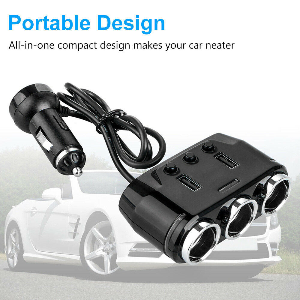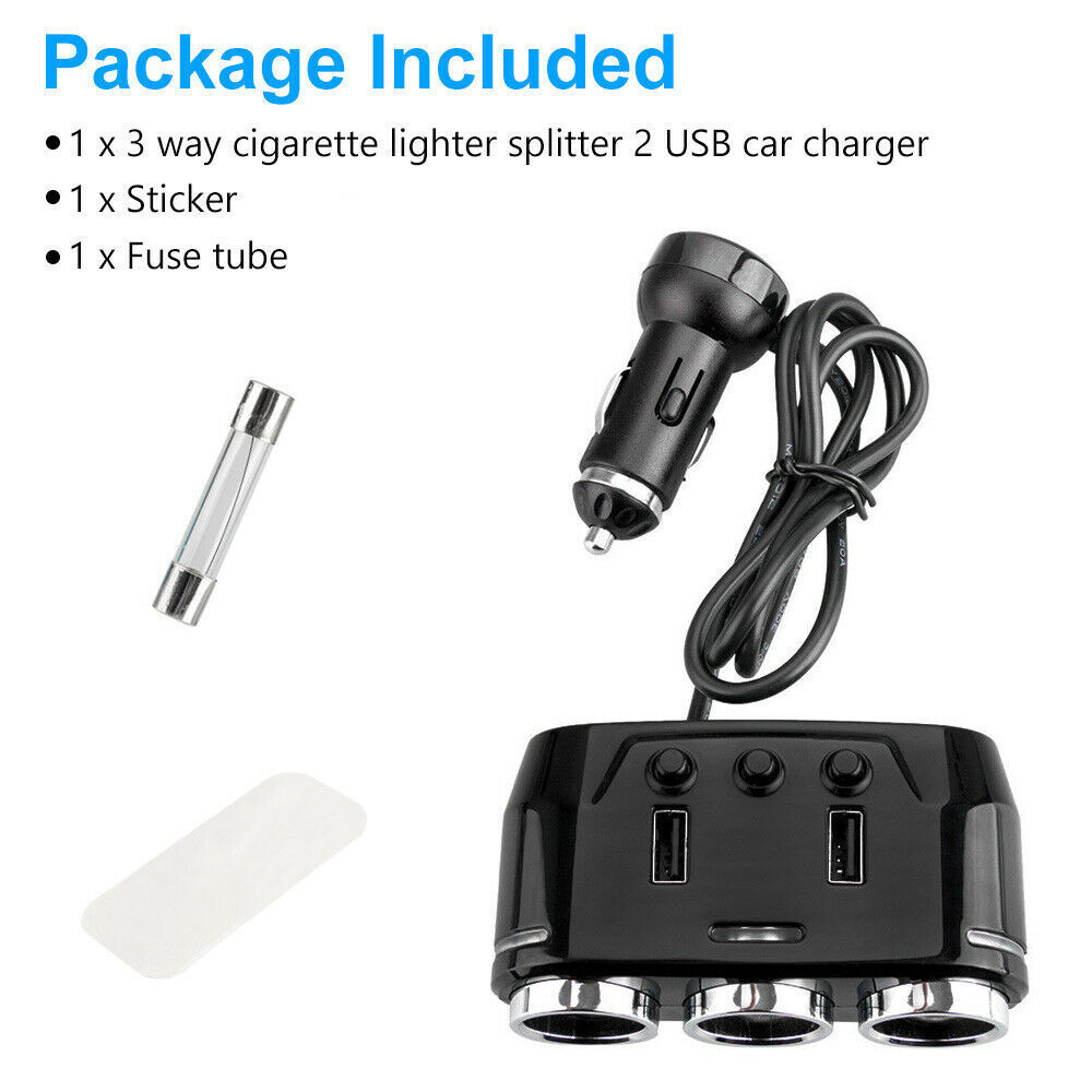 Three Way 12V Multi Socket Car Lighter Splitter Dual USB Charger Adapter