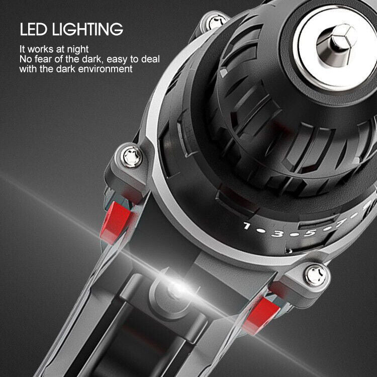 48V CORDLESS DRILL+ 2 BATTERY HEAVY DUTY IMPACT DRIVER BRUSHLESS HAMMER KIT
