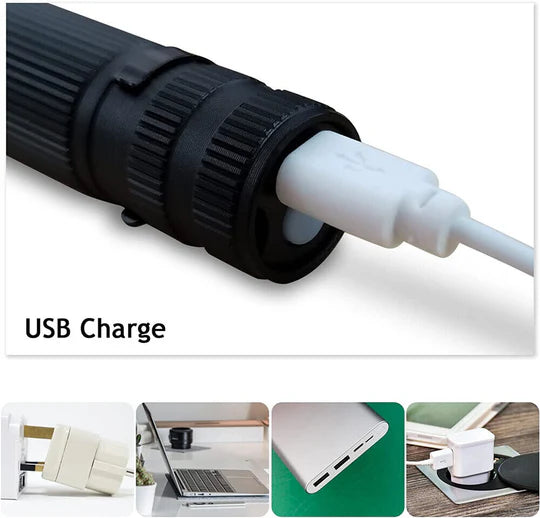 LED FLASHLIGHT ZOOM USB RECHARGEABLE TACTICAL TORCH LIGHT WATERPROOF