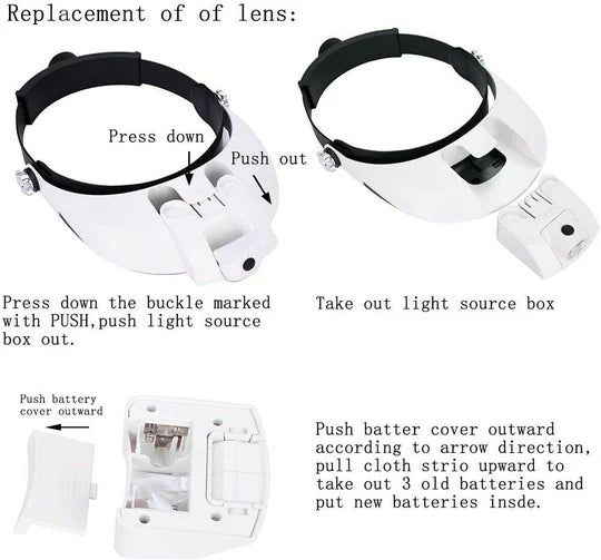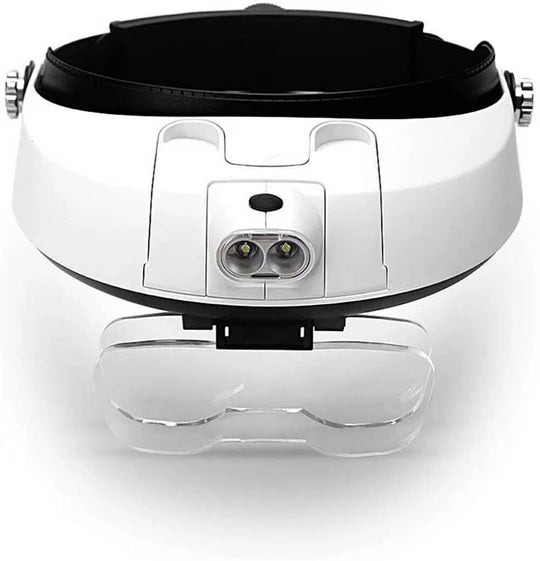 JEWELER MAGNIFIER HEAD-MOUNTED HEADBAND LIGHT 2 LED LAMP MAGNIFYING LENS GLASS