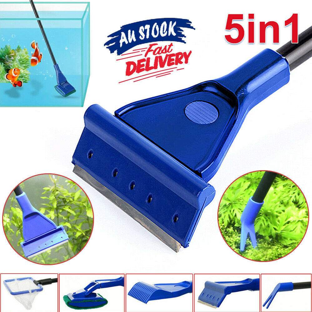 Water Aquarium Cleaning Tool 5 in1 Fish Tank Gravel Vacuum Glass Cleaner Brush