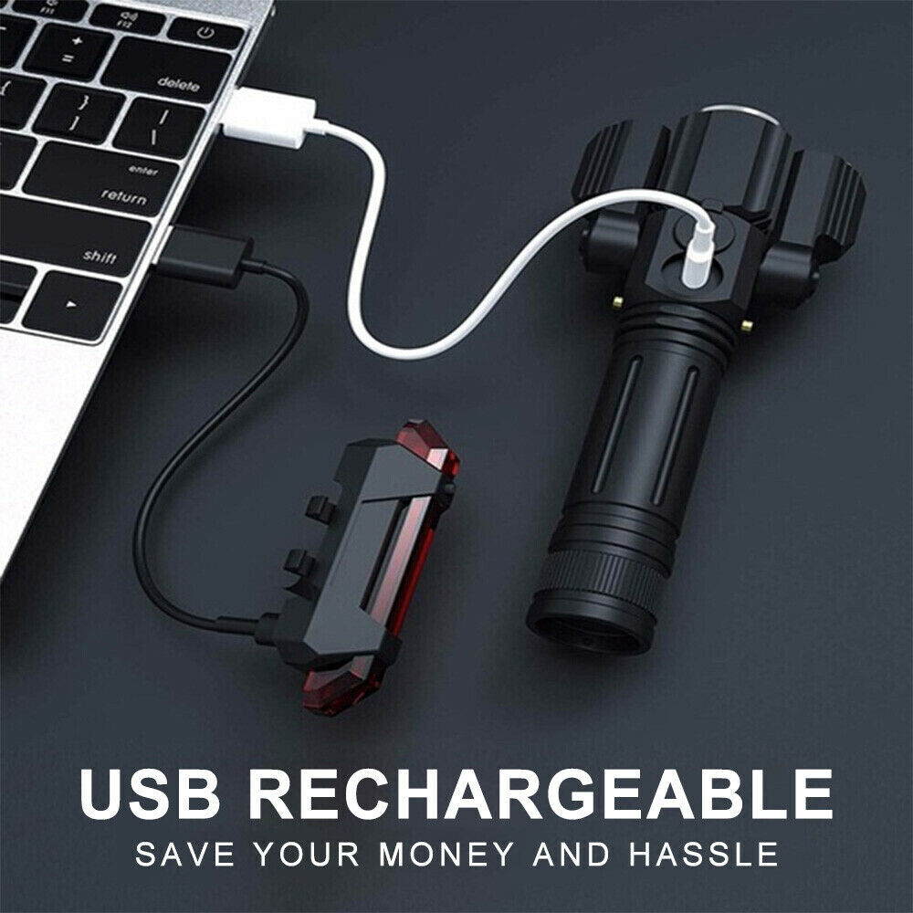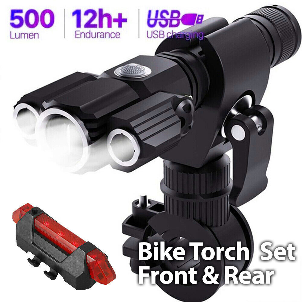 Torch Front & Rear LED Lights Set Mountain Bike Bicycle Rechargeable Lamp USB OZ