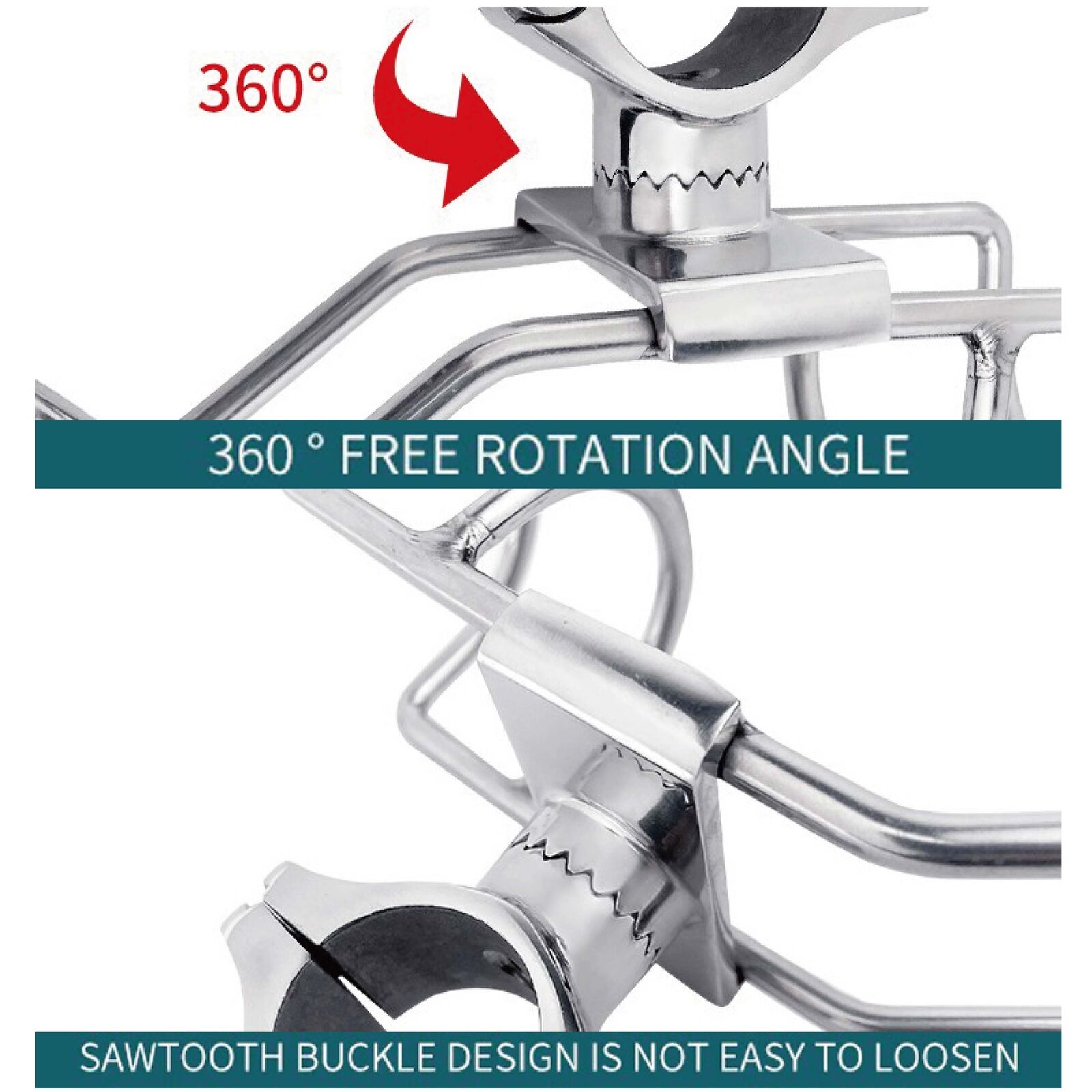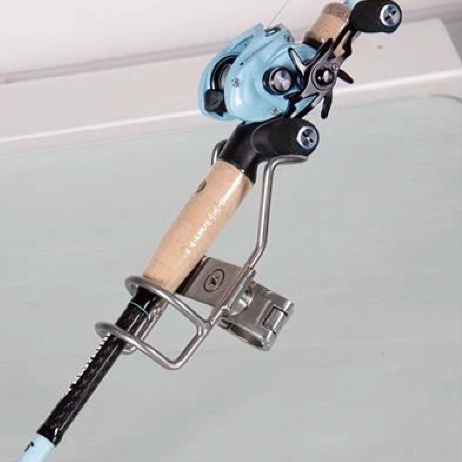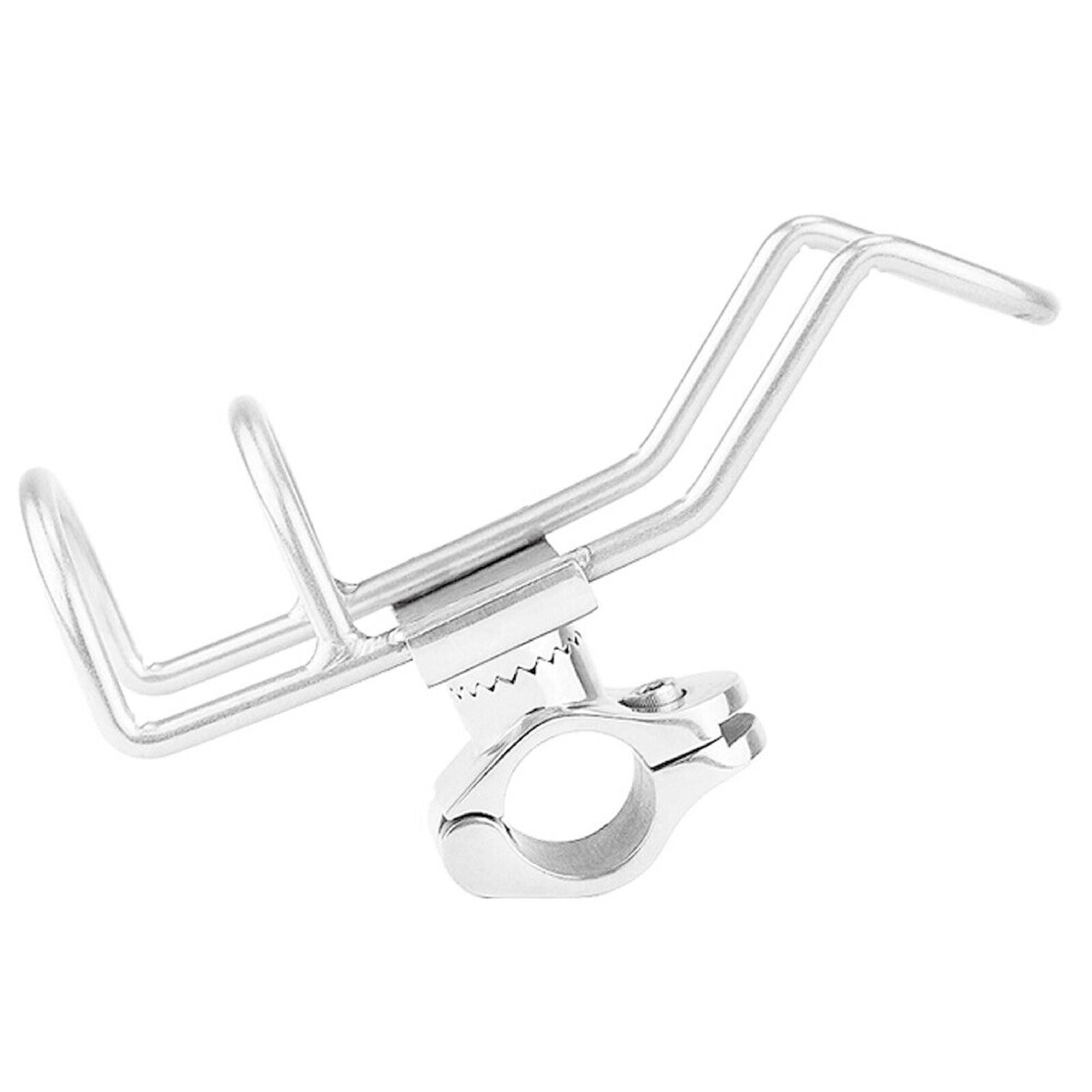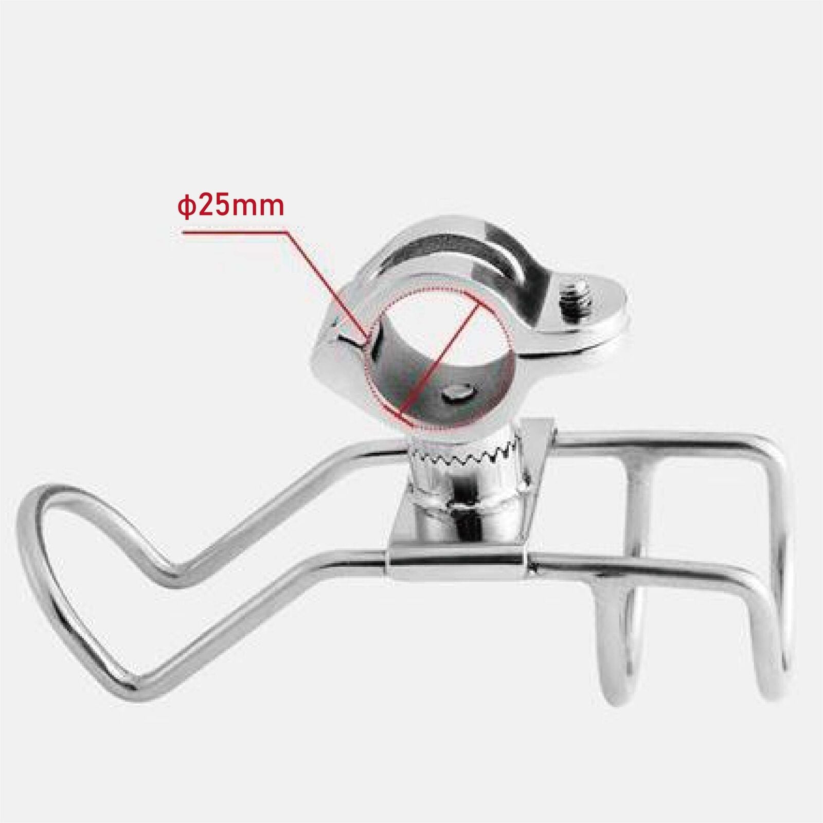 Corrosion resistant stainless steel rod holder with stainless steel screws, 360 Degree adjustable rotation Anti slip coating on the rail mount clamps for secure attachment Rail mount will clamp on to 24mm to 25mm diameter rails.