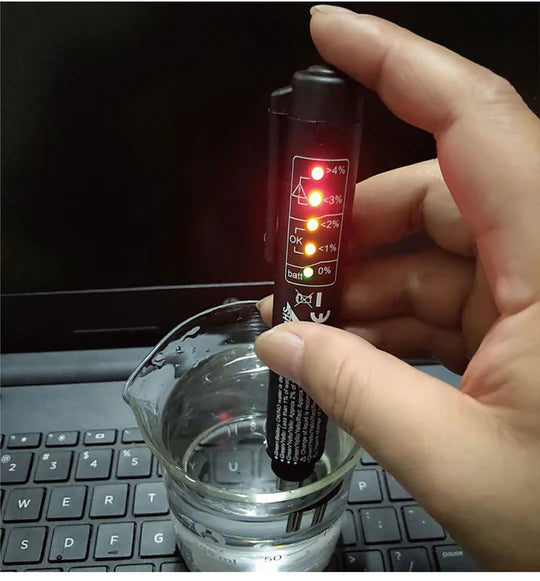 1. Moisture Content Measurement: The tester measures the moisture content of brake fluid through changes in conductivity, promoting accurate assessment.