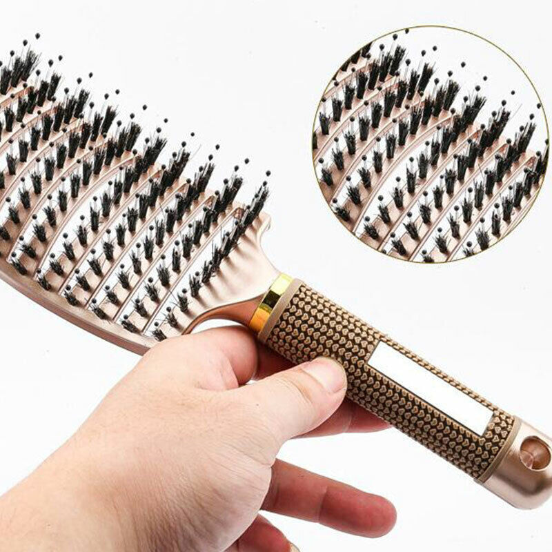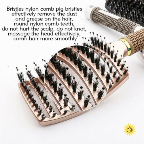 Nylon Bristle Detangling Boar Hair Brush Head Scalp Massage Vented Curve