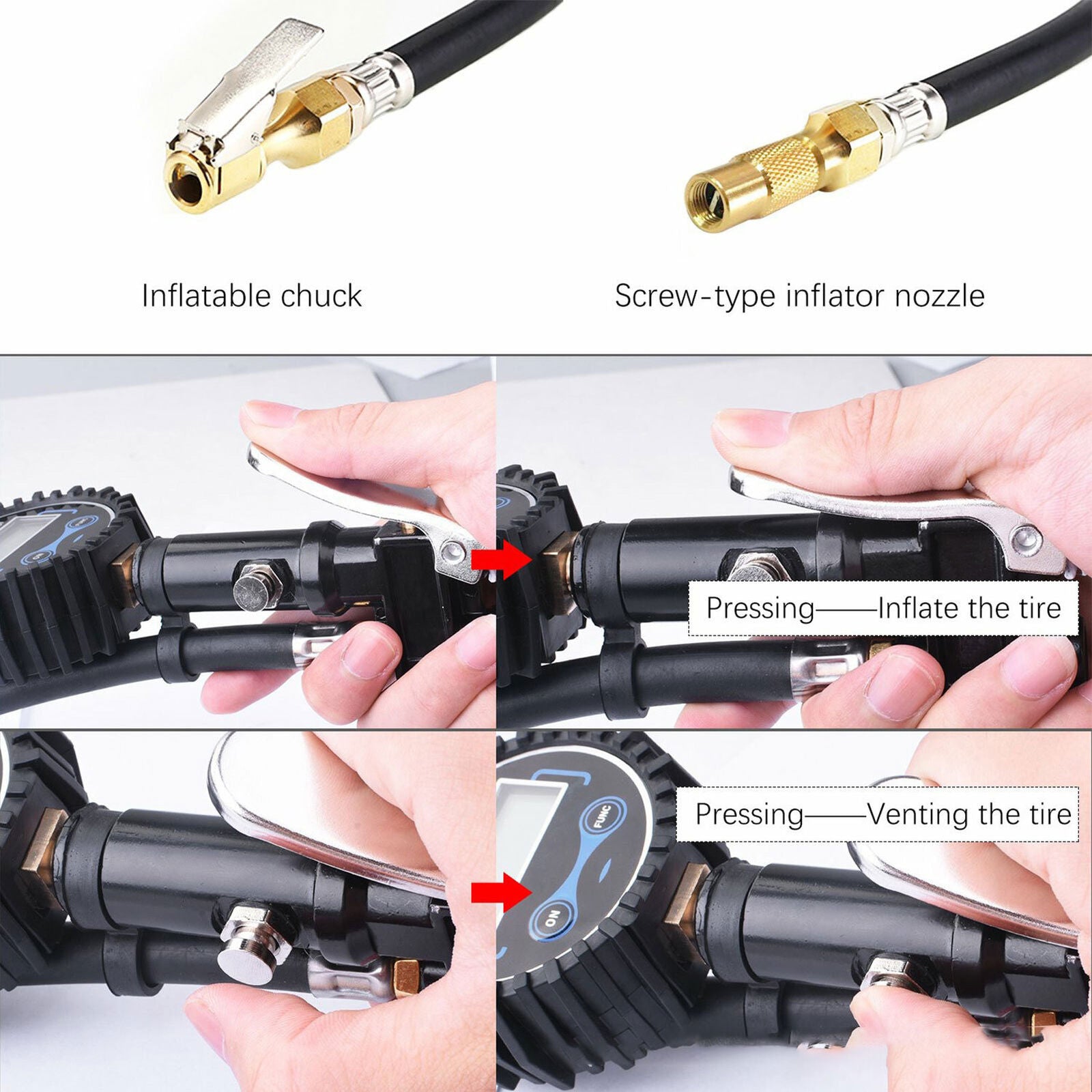 LED Digital Tyre Inflator Car Air Pressure Tire Gauge PSI Hose A Car Motorcycle