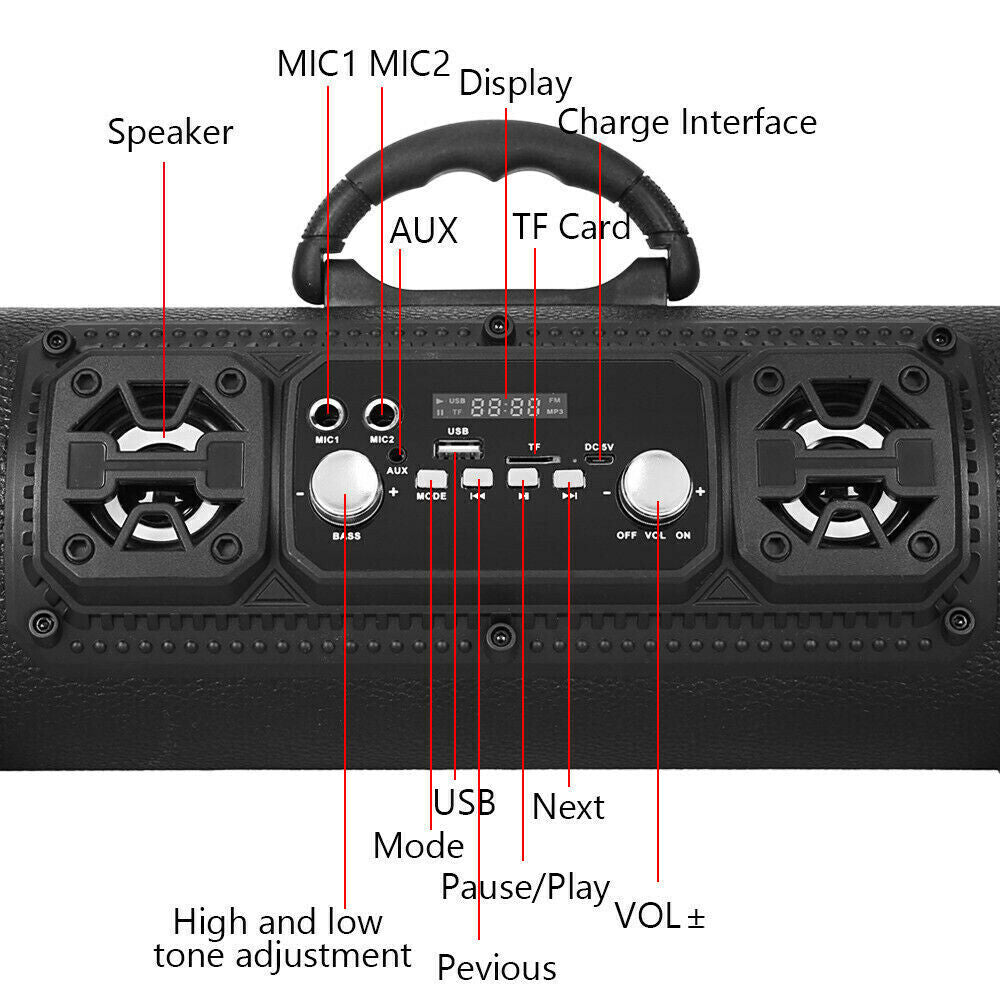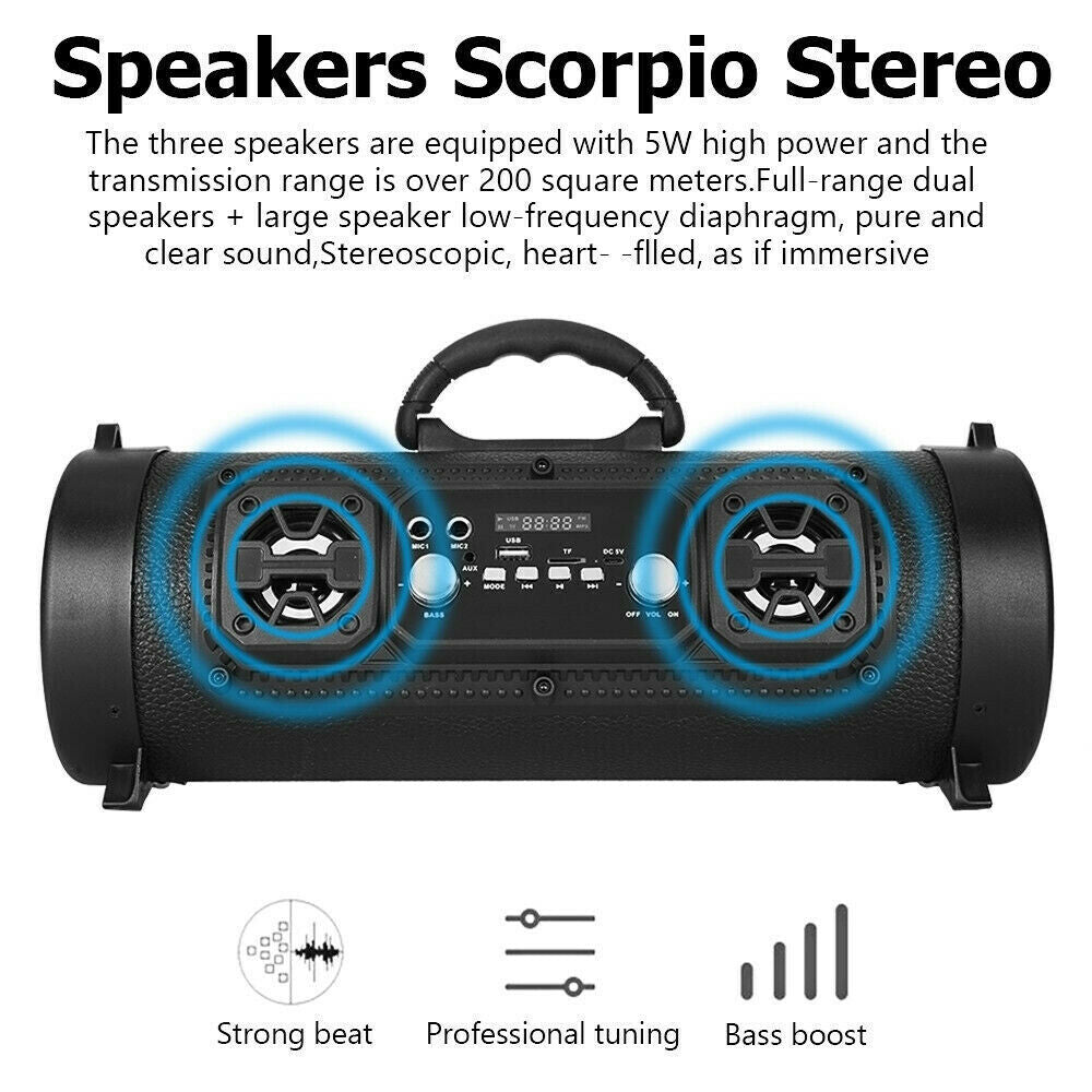Portable Speaker Wireless Bluetooth Stereo Bass USB/TF/ Radio Subwoofer