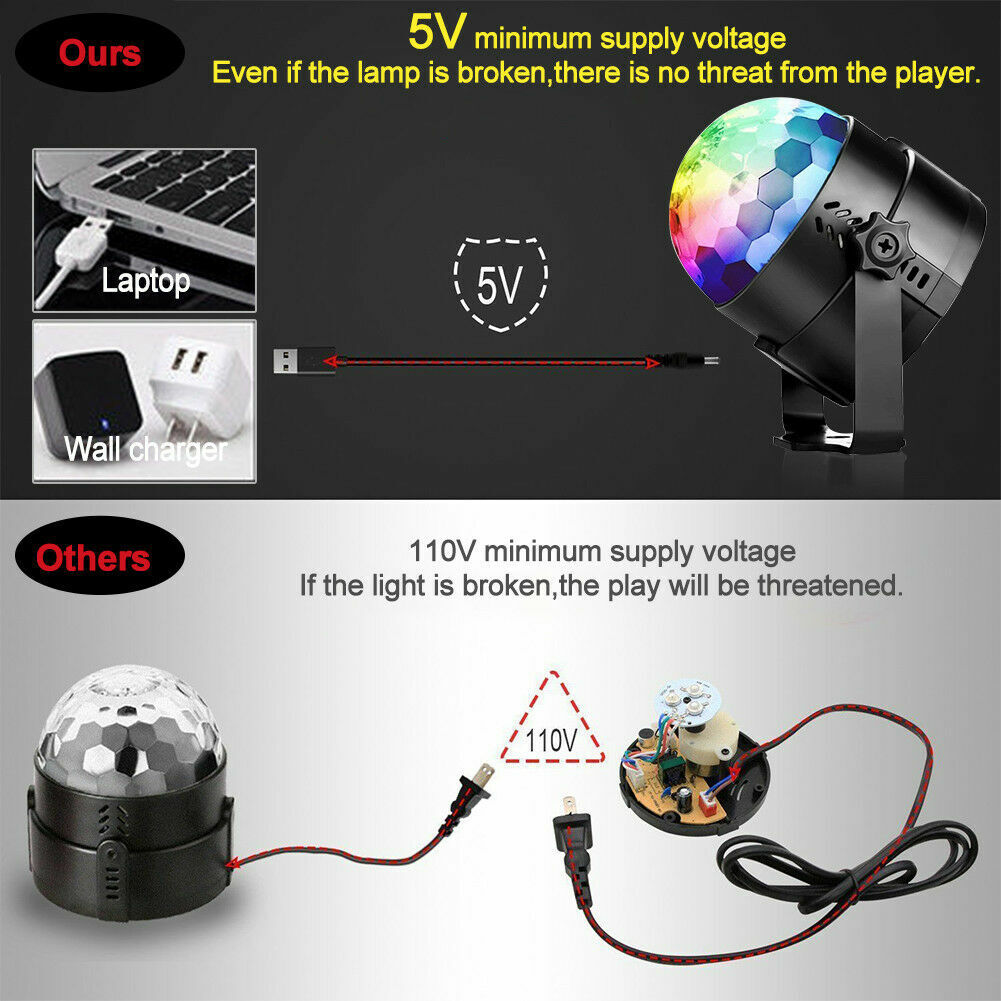 USB RGB LED Disco Ball DJ Party Light Effect Strobe Remote Auto Sound Activated