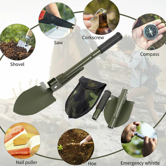- Multi-Function: The item comes with shoveling, digging, cutting, chopping, prying, picking, bottle opening, sawing, hammering.