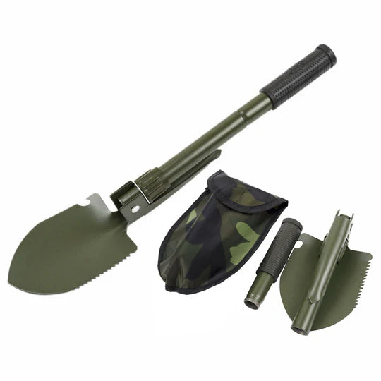 - Foldable with a carrying pouch with a loop so the shovel could attach to a belt or backpack.