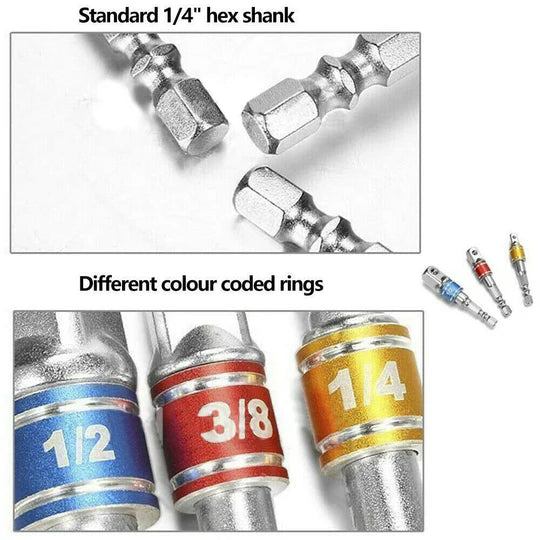 Socket Adaptor Set Driver Hex Shank Drill Bits 1/2" 1/4" 3/8" Impact Driver