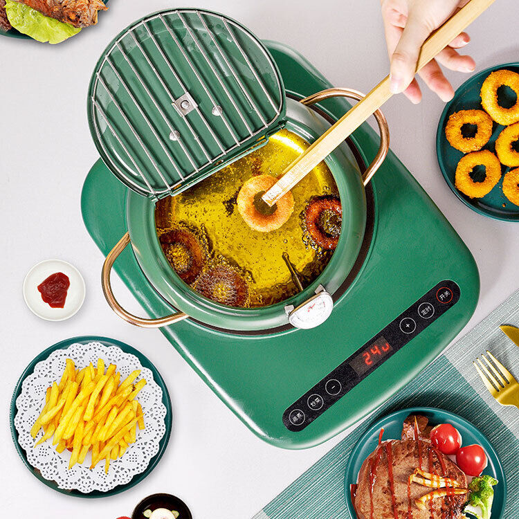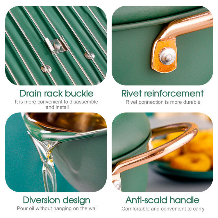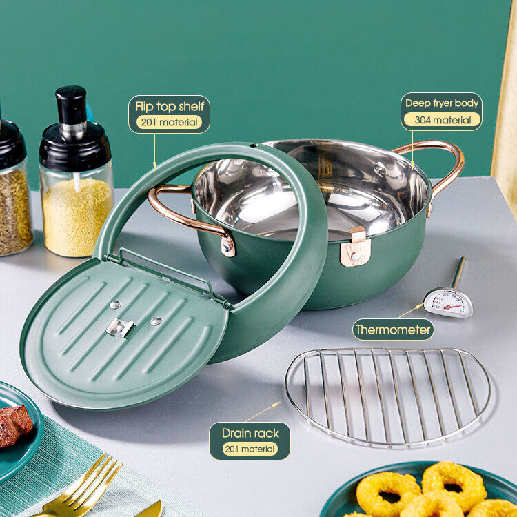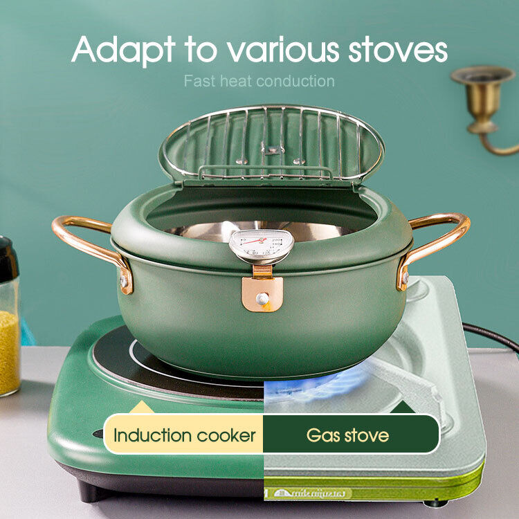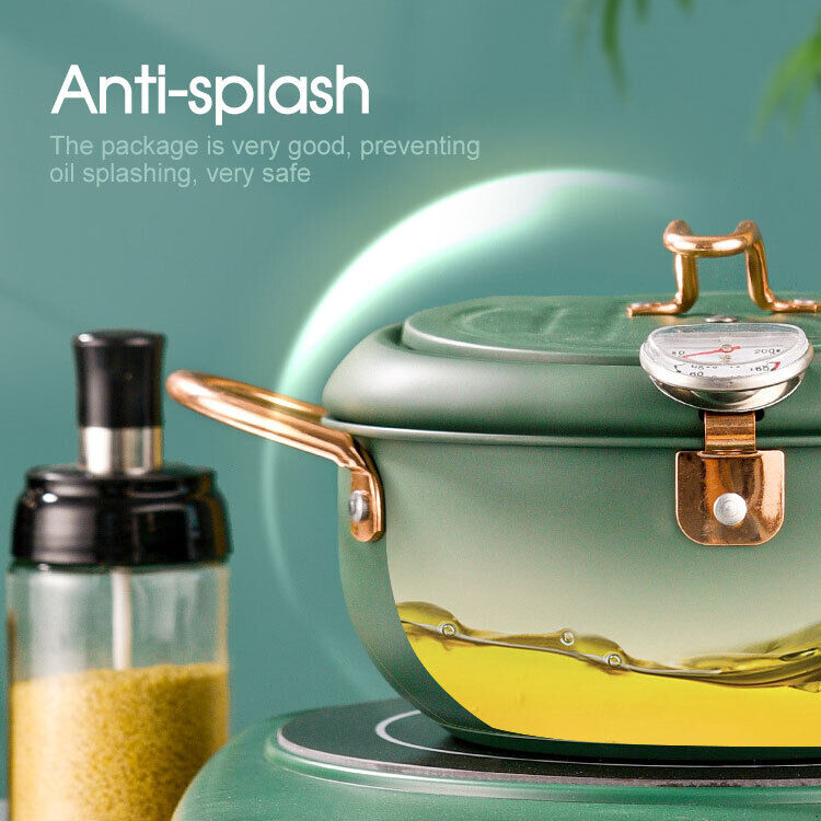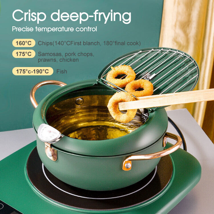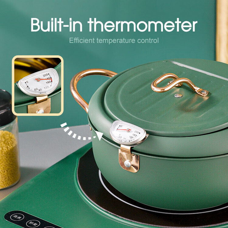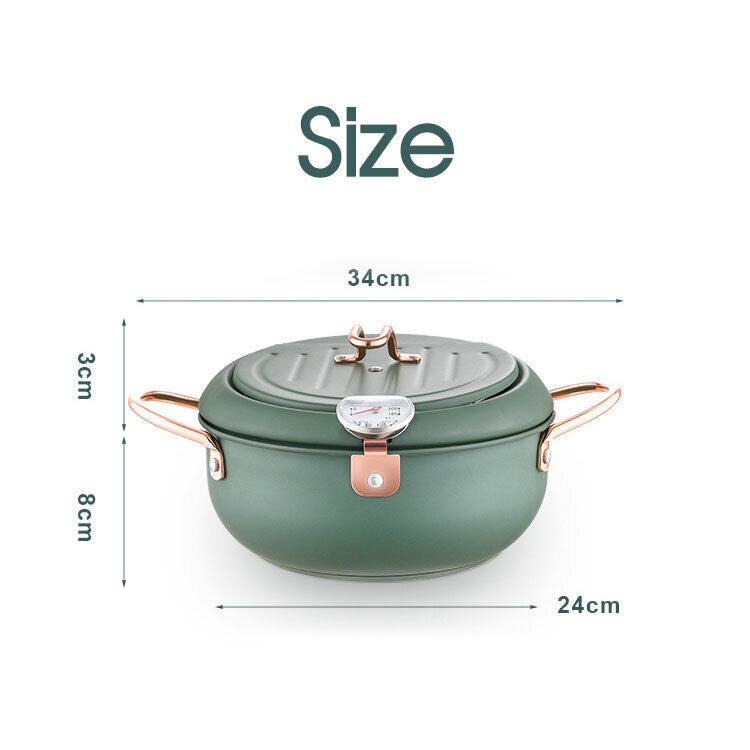 Japanese Deep Frying Pot with Thermometer Non-stick Tempura Fryer Pan 24m Green