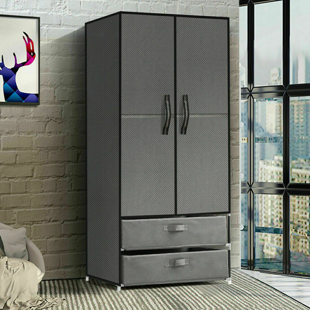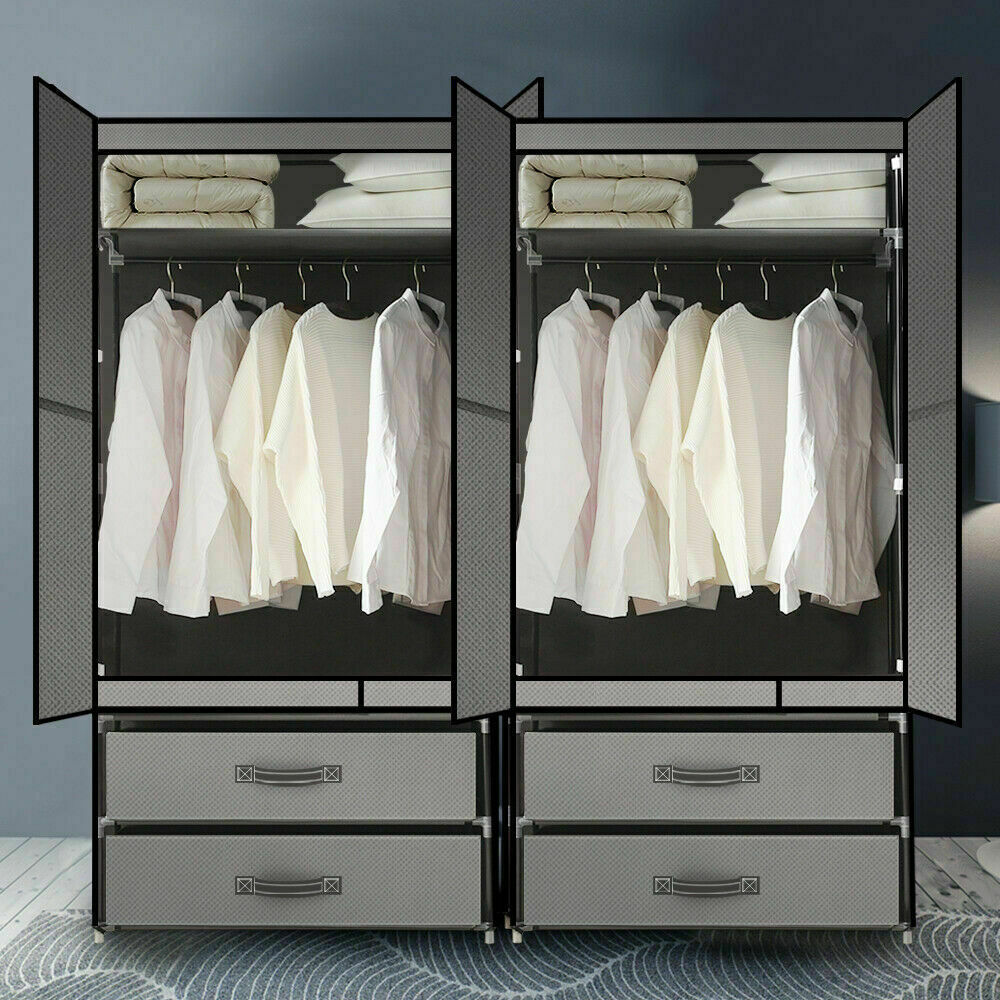 Large Portable Clothes Closet Wardrobe Storage Cabinet Organiser Unit with Shelf