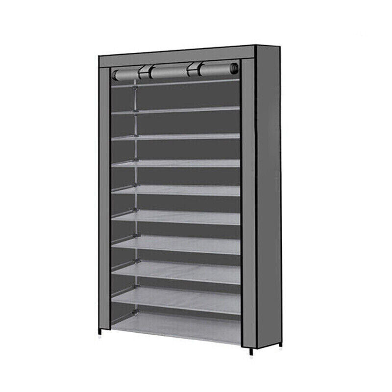 10 Tier Shoe Rack Portable Storage Cabinet Organiser Wardrobe Black Cover