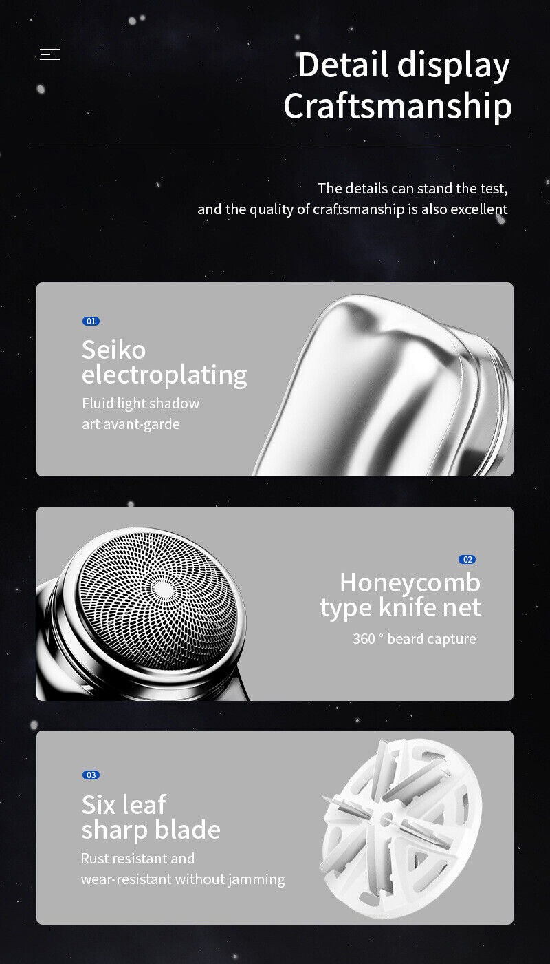 - Precise and Painless Shaving.The motor speed is as high as 6600rpm, which is twice that of electric shavers,