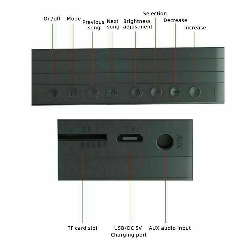 5. Easy Set -- With five function button (Mode, Alarm, Snz/Light,Up, Down). long press or short press buttons to set.