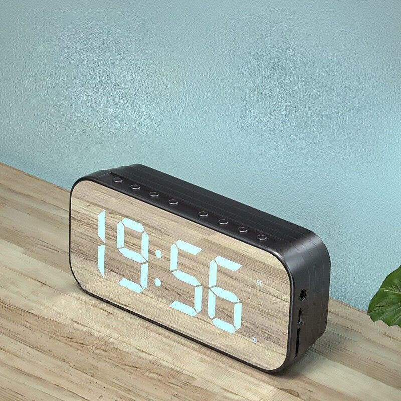Mirror LED Display Digital Alarm Clock Wireless Bluetooth Speaker Home Decor
