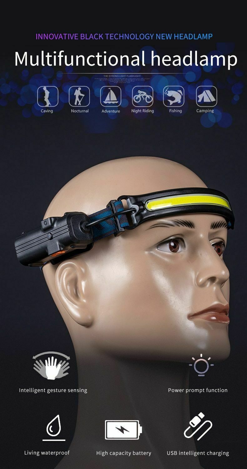 Headlamp sensor head light Led XPG+COB USB Headlight Waterproof Camping