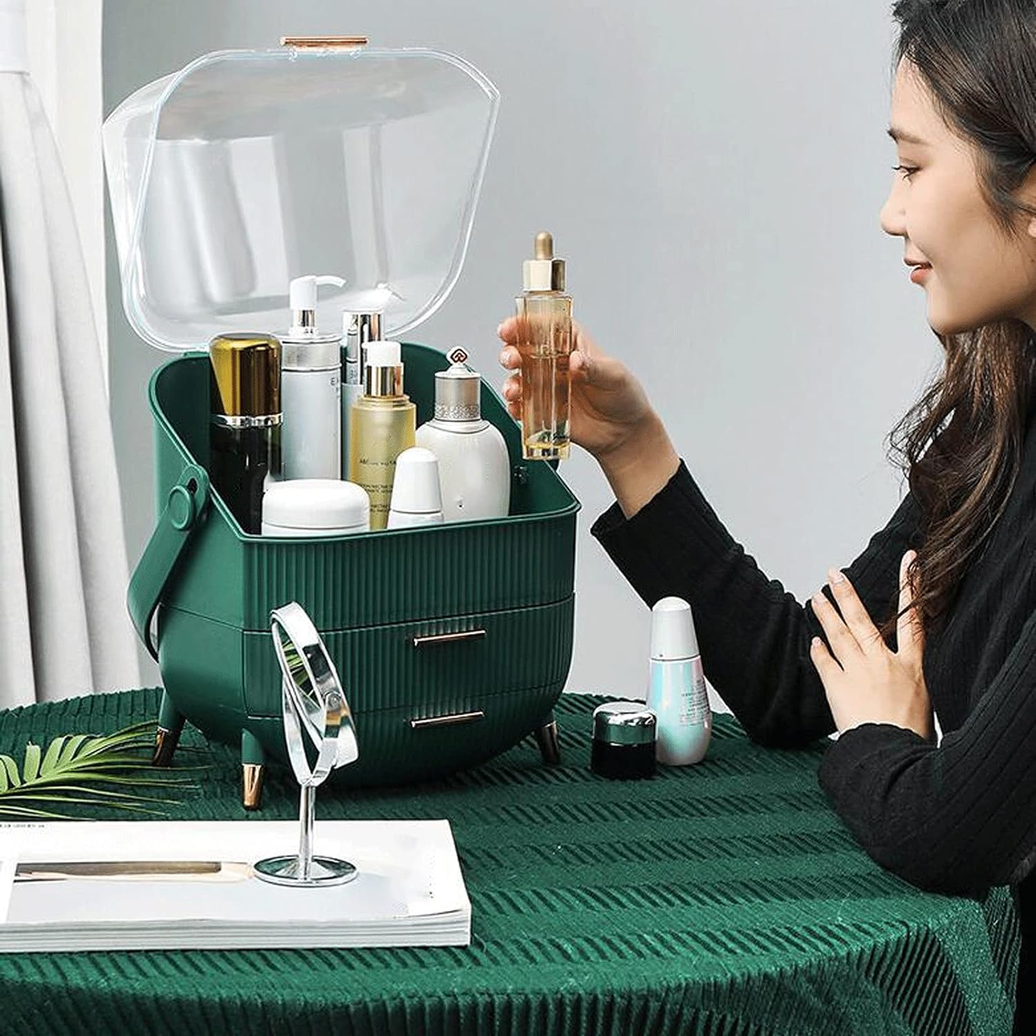 - 3. Save space: The cosmetic storage box can save 80% space of the dressing table. In addition, the integrated portable design is convenient to carry.