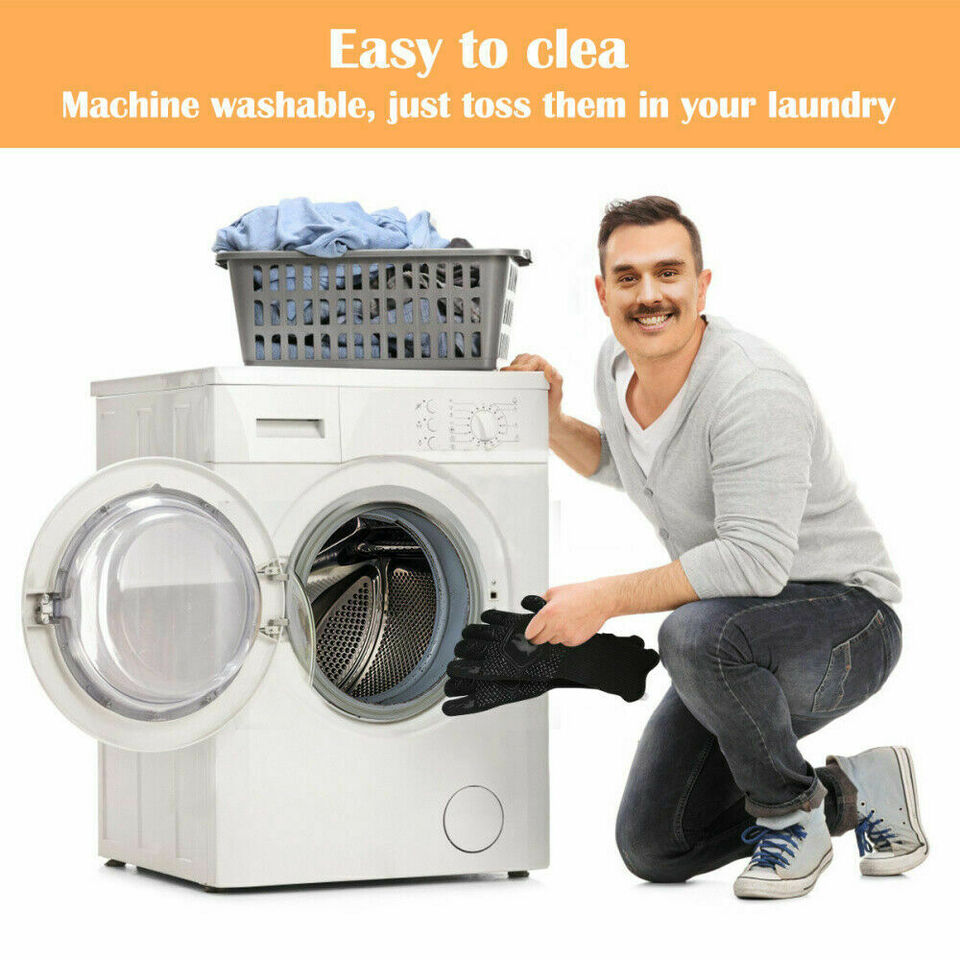 This kitchen item protects you from the heat and it's easy to clean too. You can safely pick up hot items with these non-slip heat resistant gloves. Use to hold hot pots, pans, plates, bowls and trays, and also grab any hot item straight from the stove top, microwave or oven.