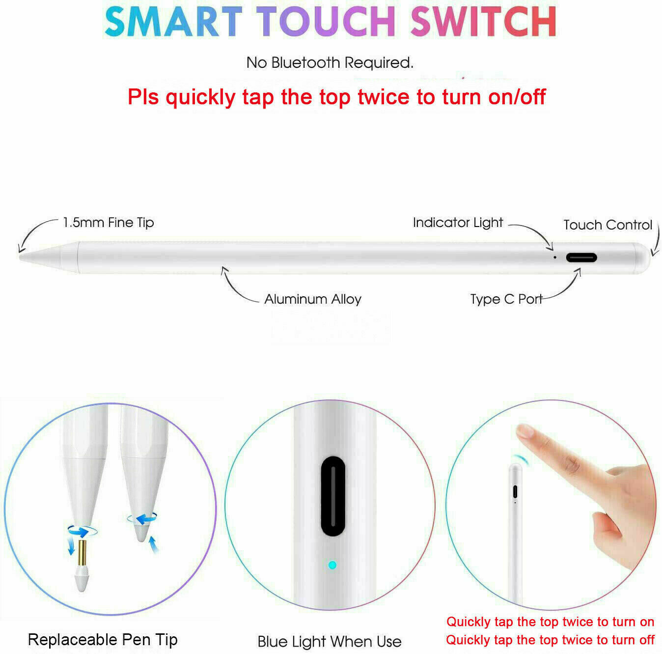 Pencil Pen for Apple iPad 6th/7th/8th/Mini 5th/Pro 11&12.9''/Air 3rd Gen Stylus