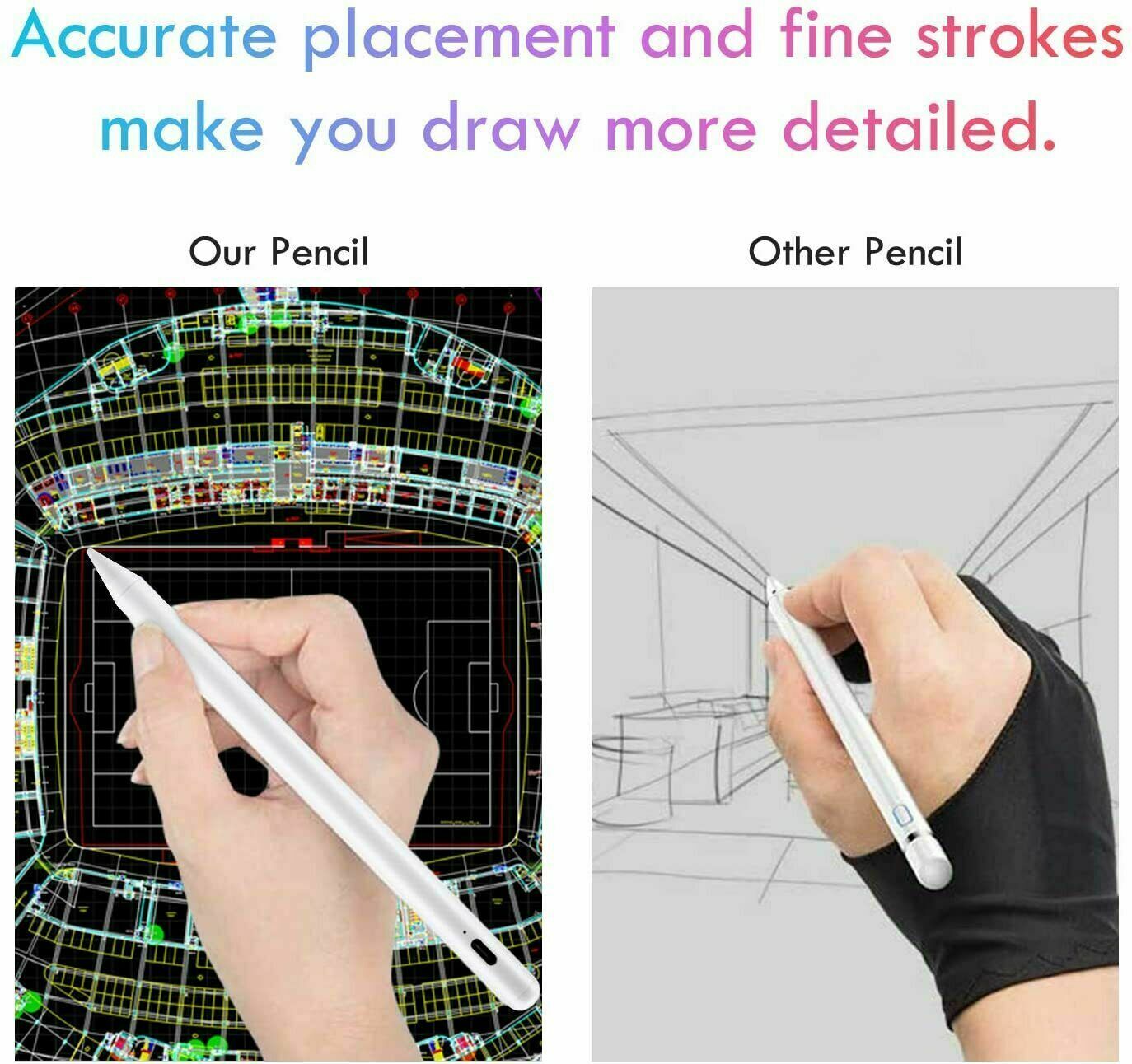 Palm Rejection Technology: Upgraded iPad pen with palm rejection technology ,you can rest your palm comfortably on the screen while writing or drawing,you don't have to wear the anti-friction glove with this pencil.