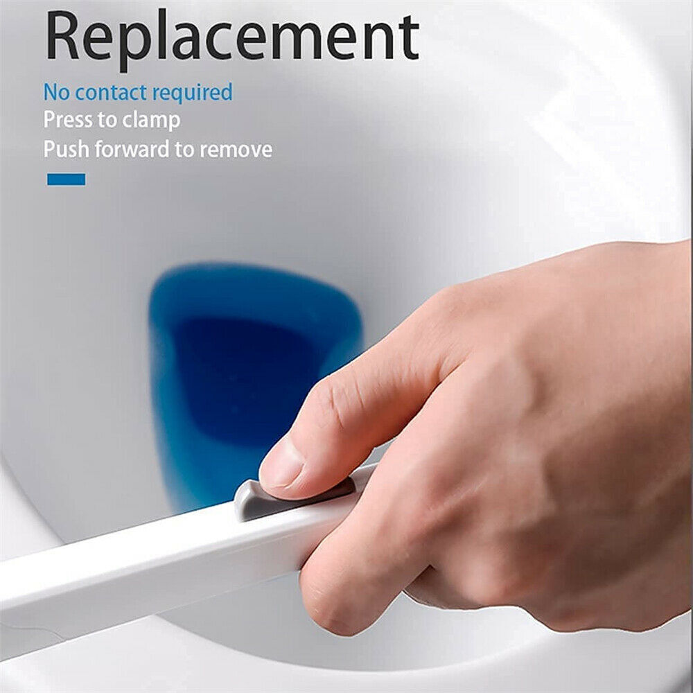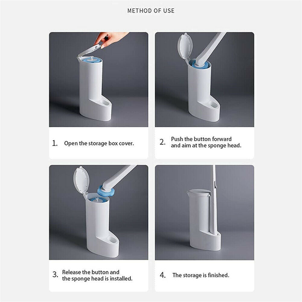 - Disposable Sponges: These toilet scrub pad refill heads click onto the toilet and to swish, scrub and clean the toilet bowl and conveniently pop off to throw in the trash.