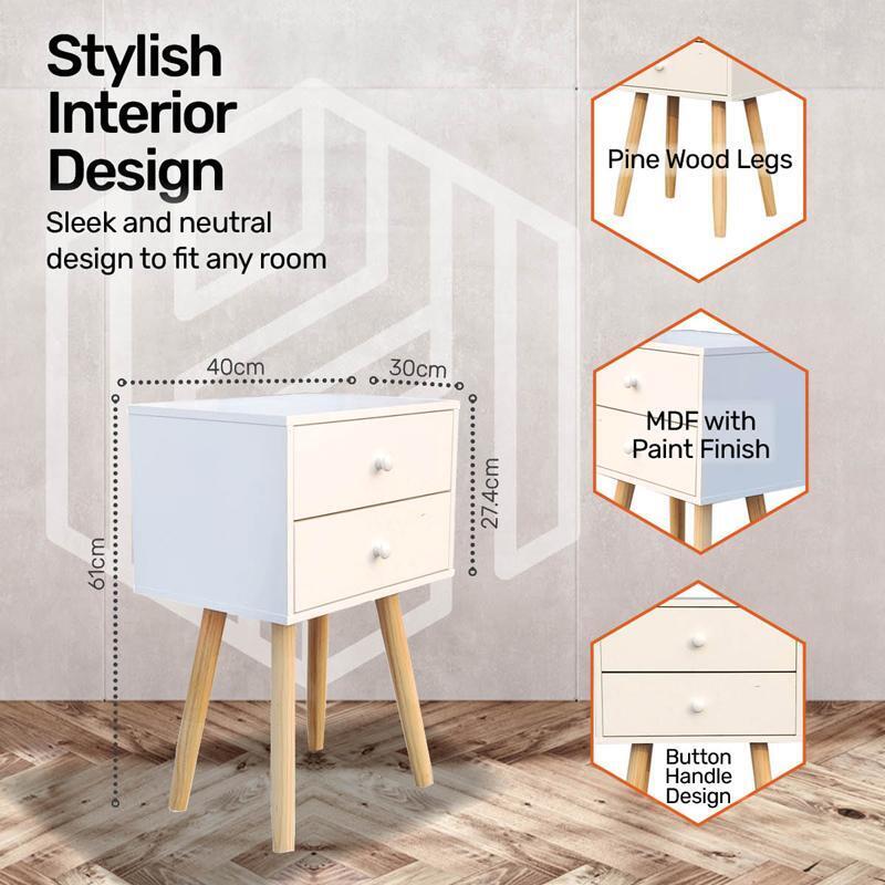 Side Table 1/2 Drawer Grey With Natural Wood Handle