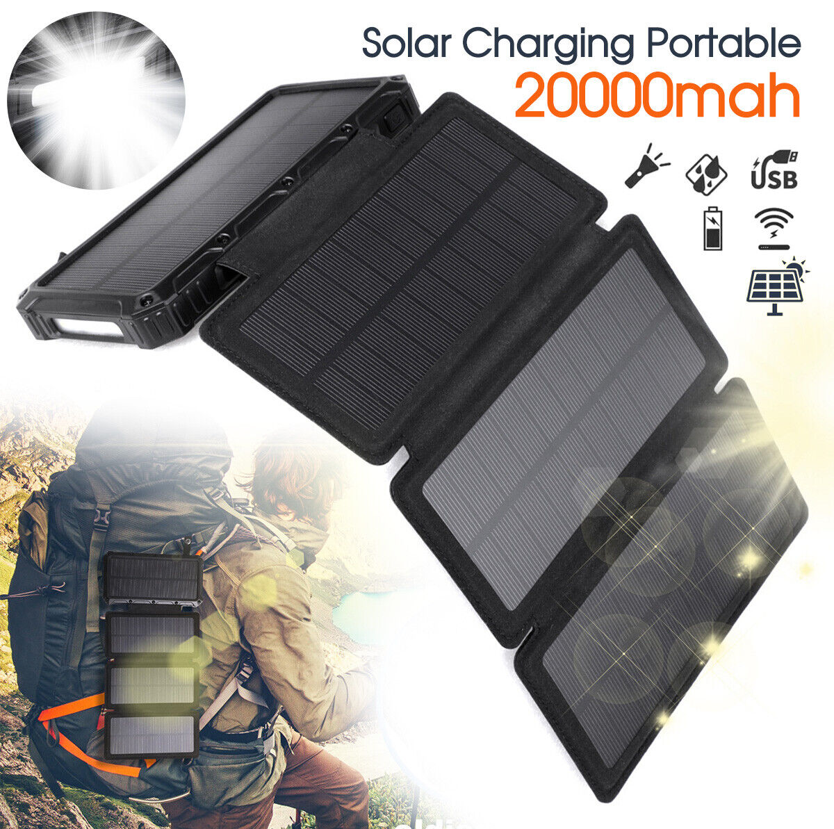 Solar Charging Portable 20000mAh QI Wireless Power Bank Folding panel For Phone
