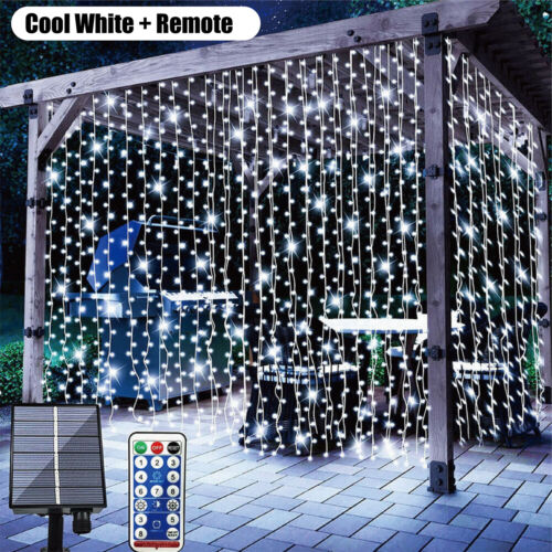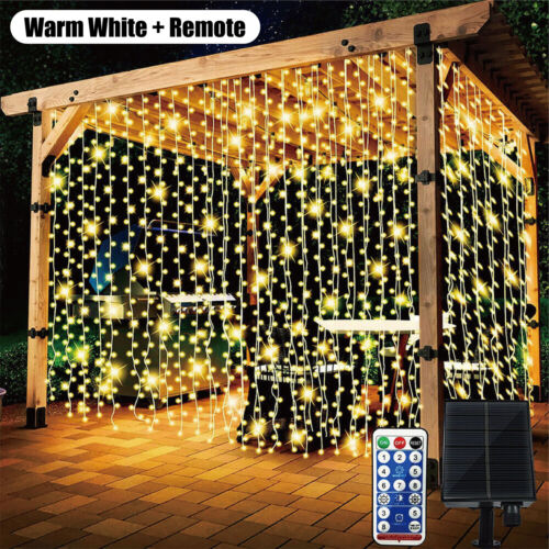 LED Solar Power Curtain Light Fairy String Lights Room Garden Outdoor Home Deco