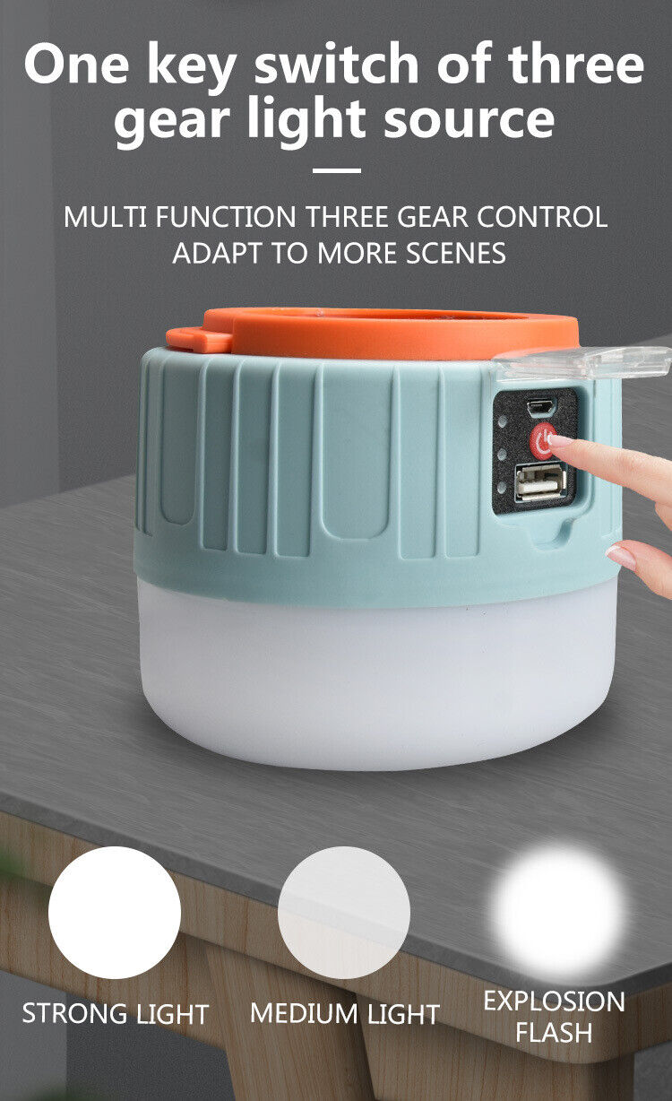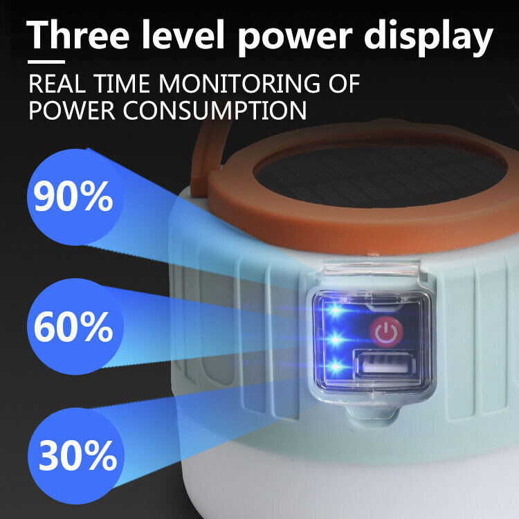 Portable LED Solar Camping Light Lantern Outdoor Tent Lamp USB Rechargeable
