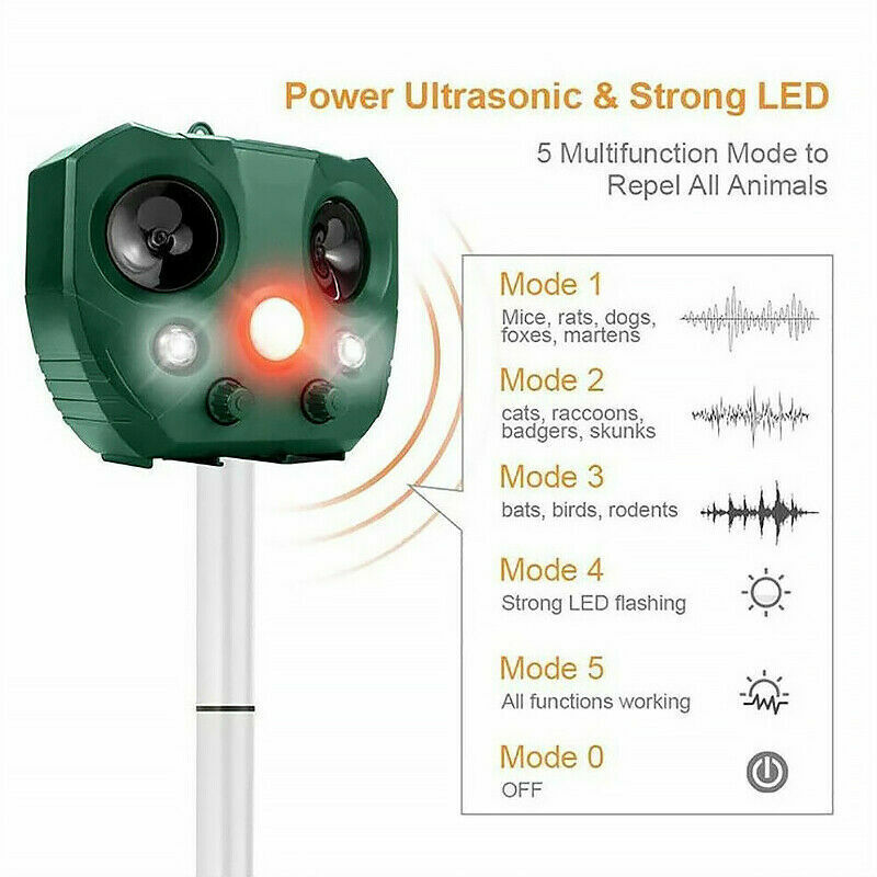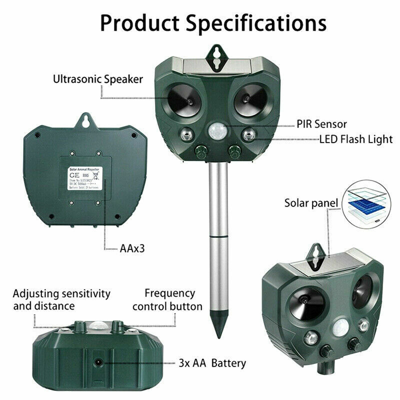Solar Ultrasonic Animal & Pets Repeller Motion Sensor Bird Rat Possum Repellent