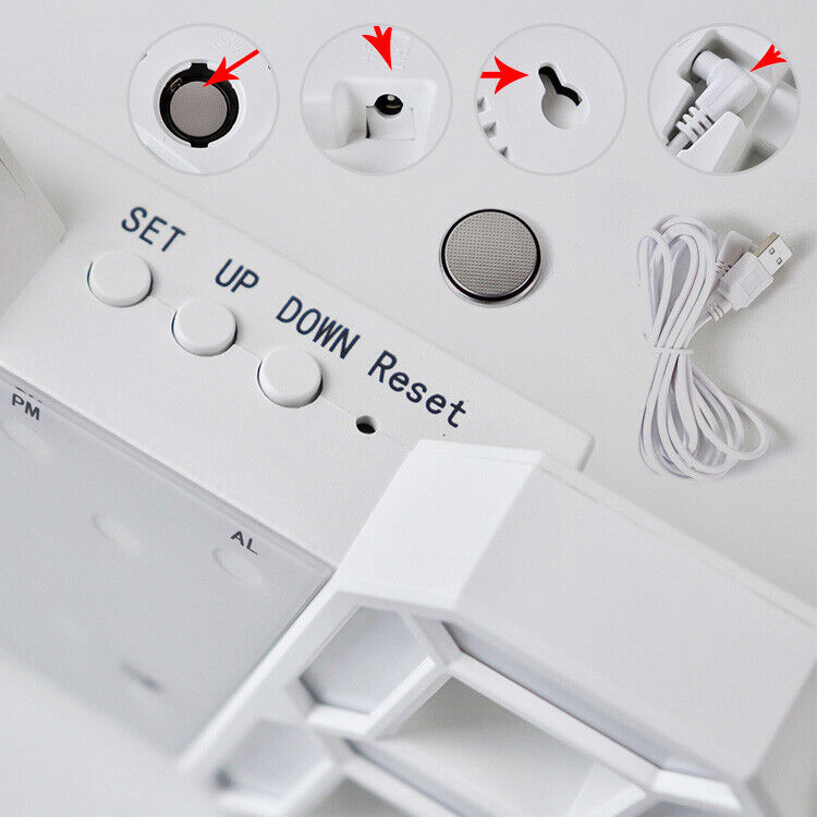 LED Digital Wall Clock Alarm USB Date Temperature Table Desktop Home Decoration
