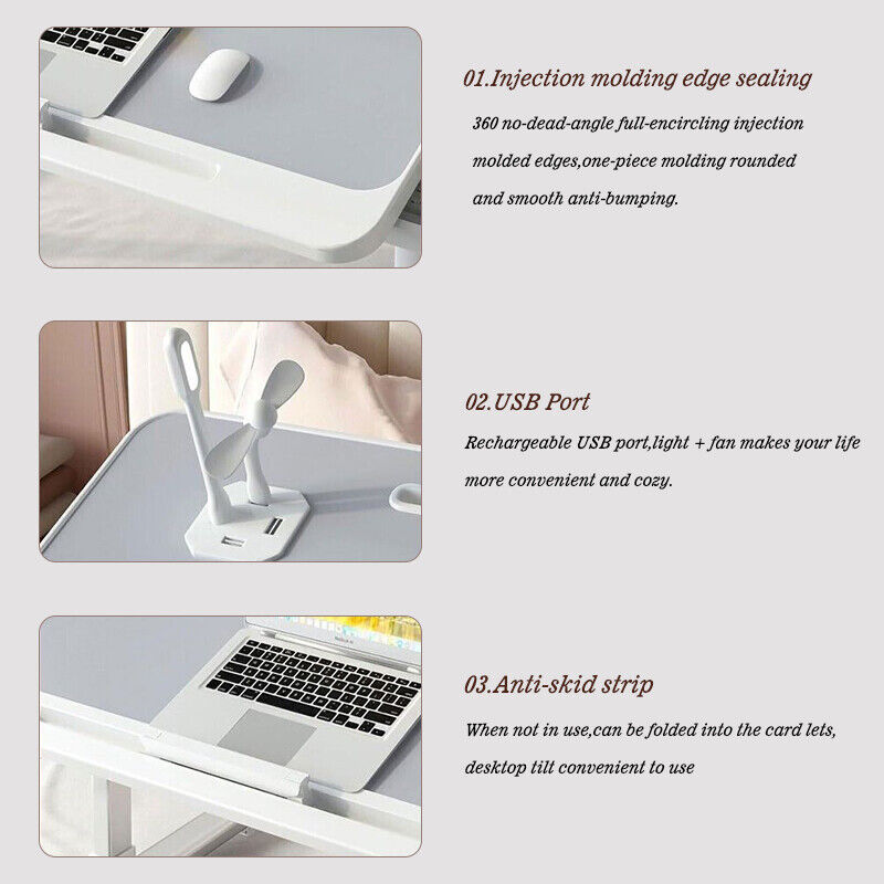 Laptop Bed Tray Desk Adjustable Table Sofa Sit Stand Desktop Computer Stand Fan